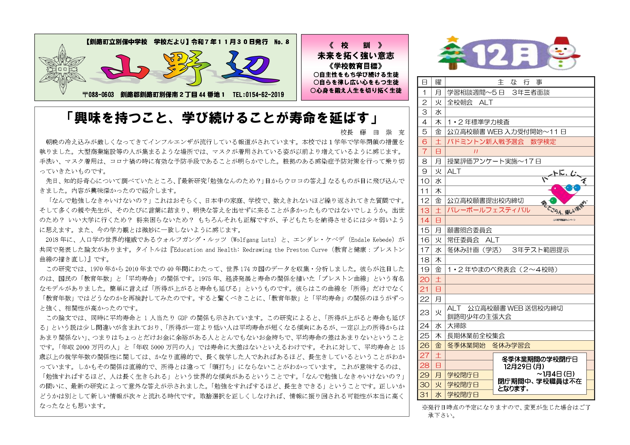 学校便り <令和7年度> 250430_学校だより(4月) 250530_学校だより(5月) 250630_学校だより(6月) 250724_学校だより(7月) 250829_学校だより(8月) 250930_学校だより(9月) 251031_学校だより(10月) 251130_学校だより(11月) <令和6年度> 250324_R6学校だより(3月) 250226_R6学校だより(2月) R6_学校評価集計表【後期】.pdf 250130_R6学校だより(1月) 241225_R6学校だより(12月) 241126_R6学校だより(11月) 241025_R6学校だより(10月) 240927_R6学校だより(9月) R6_学校評価集計表【前期】 240828_R6学校だより(8月) 240723_R6学校だより(7月) 240628_R6学校だより(6月) 240529_R6学校だより(5月) 240424_R6学校だより(4月)